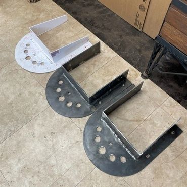 We can plasma-cut steel and stainless steel in custom designs determined by you. Plasma cutting up to 5/8" thick. Call us for information or estimates.